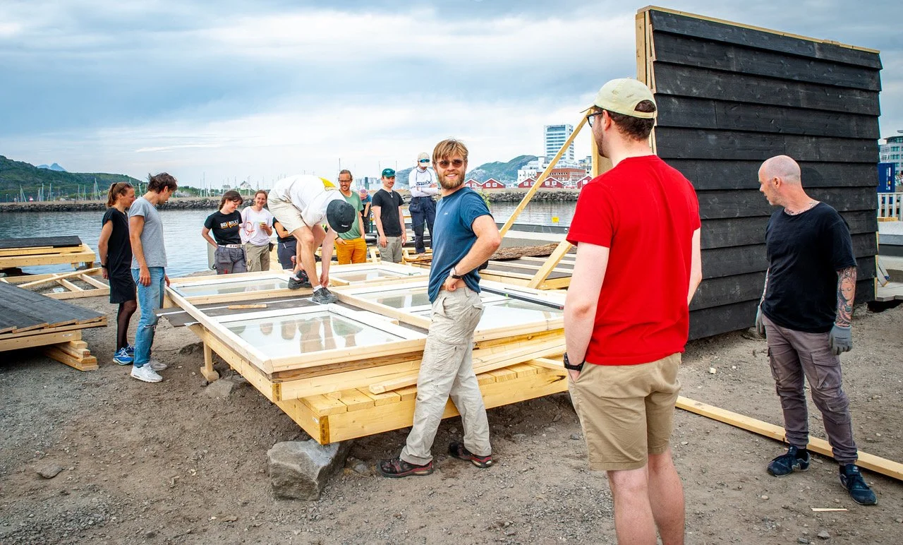 NTNU architecture students & Nord-Norsk Badstueforening creating a local meeting place, including two saunas and a greenhouse for urban gardening.